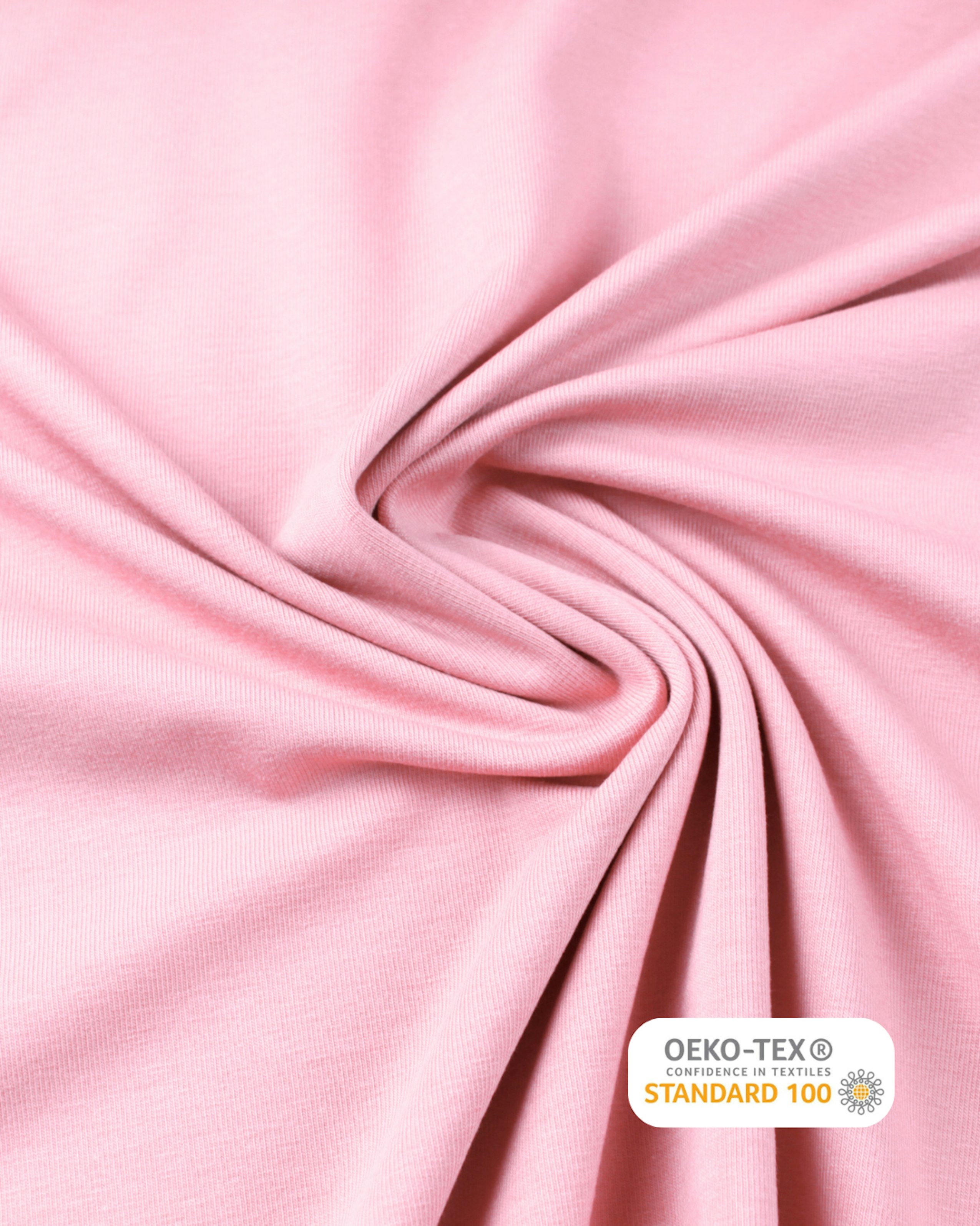 Our cotton jersey fabric of 240 gr/m² is a firm, flexible, and comfortable high-quality jersey. The fabric consists of 95% cotton and 5% elastane, making it soft to the touch, breathable, and with a nice stretch. Thanks to the Oeko-Tex Standard 100 certification, you are assured of a safe and skin-friendly fabric, free from harmful substances.